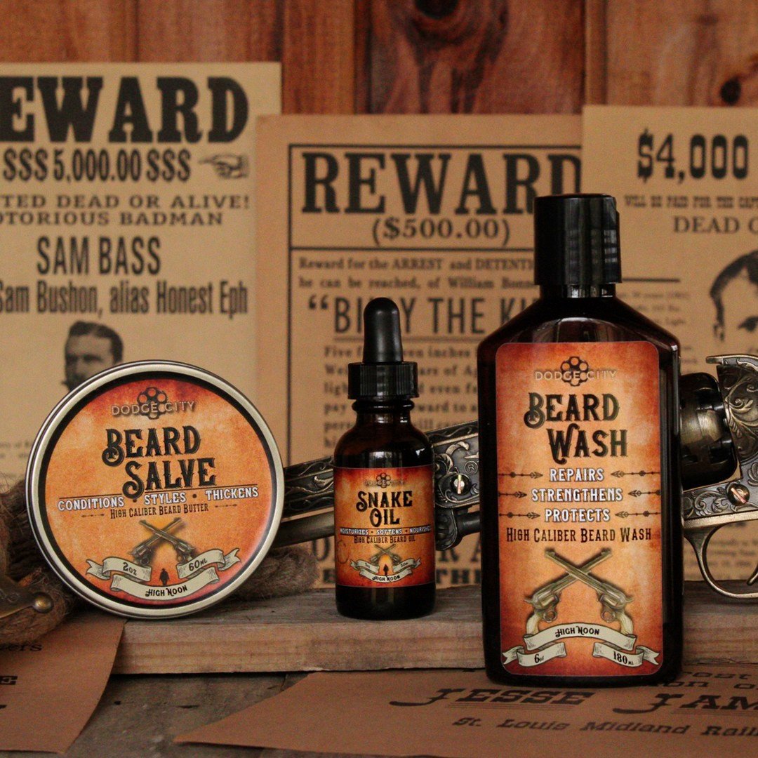 Beard Wash that fights grime as hard as Bounty Hunters fight crime. Beard Salve as smooth as top-shelf bourbon. And Snake Oil that absorbs as quickly as a quick draw leaving no residue or mess. All of this plus a 4th item of your choice will give you the arsenal you need to build the beard of a gunslinger.