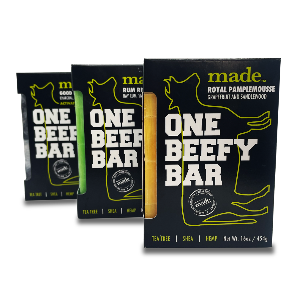 Good Rub,  activated charcoal with a bourbon and bacon fragrance.  a recipe for detox, retox and repeat.