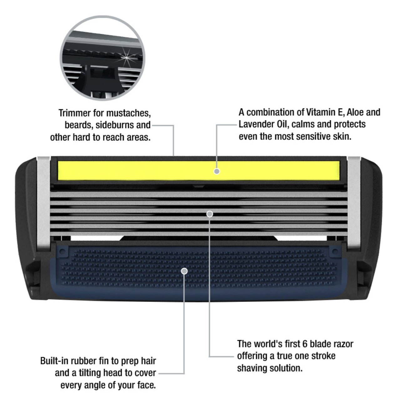 You want a great razor for a great shave, these blades are the bomb. 6 super sharp for close comfortable and a back blade trimmer for edging and getting tight spots.